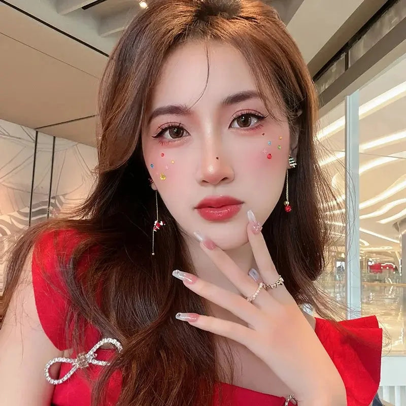 Xmas Santa Claus Drop Earrings Christmas Tree Snowflake Long Tassel Chain Earrings for Women Fashion Jewelry New Year Gift 2025
