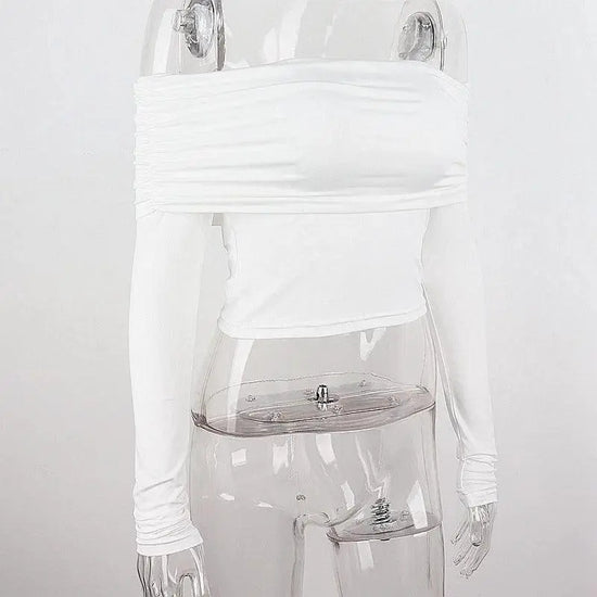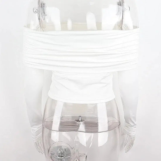 Women Off Shoulder Long Sleeve Slim Tops and Blouses Mesh Ruched Crop Tops Summer Autumn Y2K Sexy Elegant Shirts Female