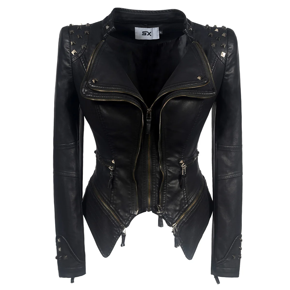 Womens PU Leather Rivet Jackets Steamp US $54.0