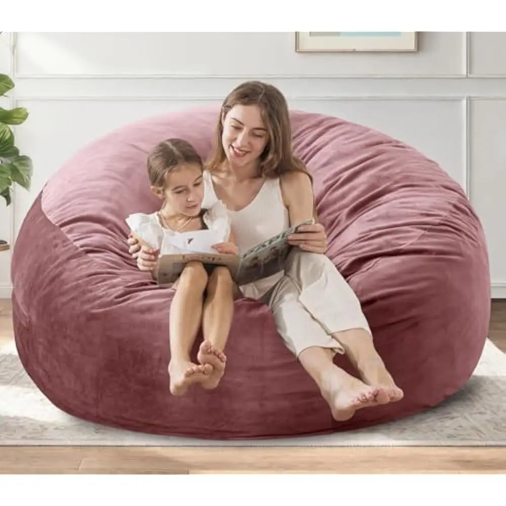 5 Large Memory Foam Filled Bean Bag Chairs for W/Filling,Ultra Soft Dutch Velvet Cover,Round Fluffy Lazy Sofa for Living Room