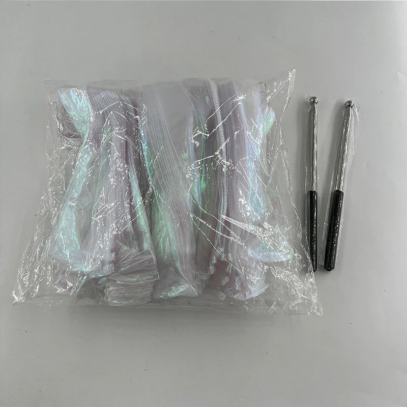 How to use:1.put 3 pcs AA batteries 2. Set telescopic baton to desired length(for the type with stick); 3.Place baton inside slot on both sides or veil; 4. Put neck loop around neck; 5. Press button to turn on.